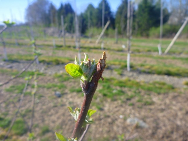 You might remember from Miss Crabapple’s biology class that buds turn into blossoms, and blossoms bring forth fruit. If a branch gets “nipped in the bud,” bye bye fruit pie. Luckily the neighborhood ne’er-do-wells have left plenty of buds, so it won’t be long til we’re sending out fresh crop alerts!
