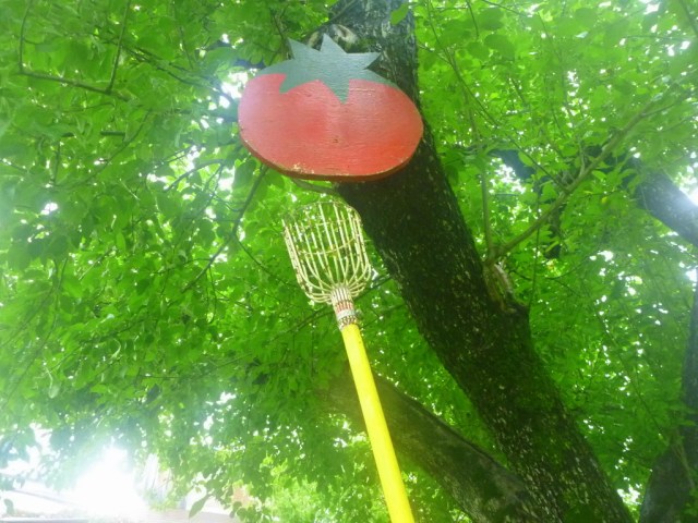 When the apples are too high to reach, you can use an “apple basket,” one of the poles you’ll find around the orchard or at the farm stand.