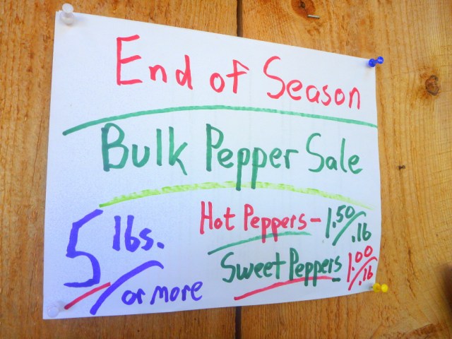 Last week’s pepper sale gets even crazier this week — buy 5 pounds and pay $1 a pound (sweet) or $1.50 (hot). Time to score a winter’s worth of flavor.
