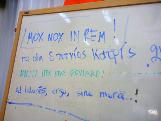 The whiteboard in our workshop is like the internet — everything written there is true. Today it says, “Mox nox in rem,” which is Latin for, “Let’s get on with things, night is coming.” And by night we mean winter. So get out here and pick.