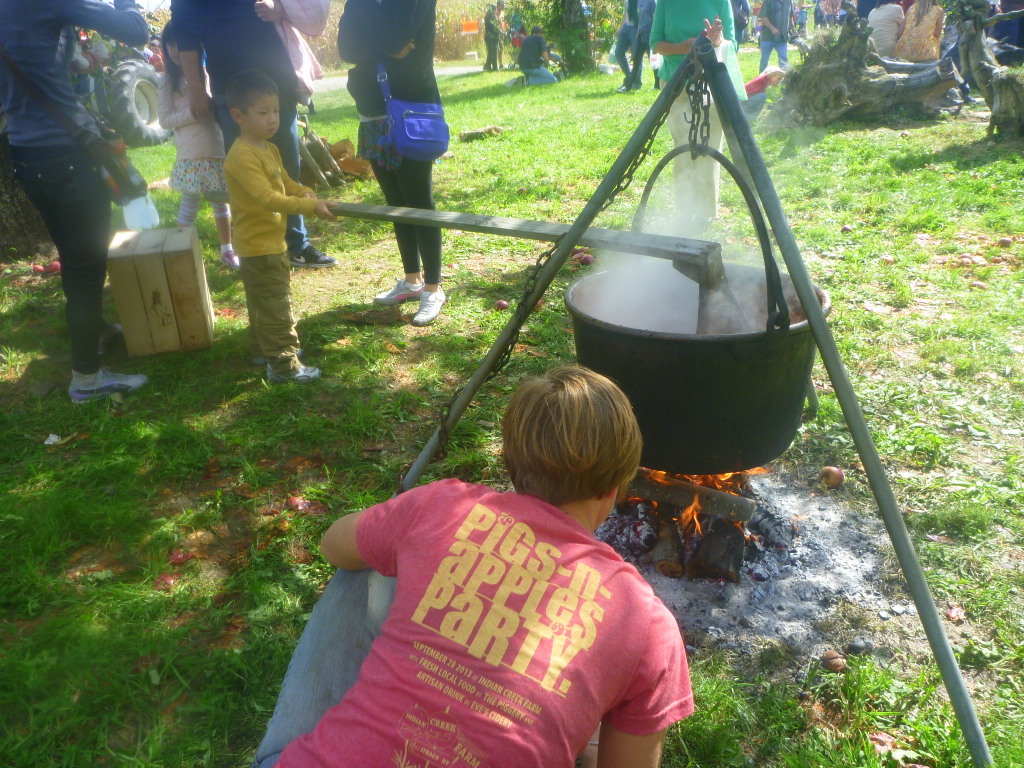 Our hot-jarred Apple Butter, brewed in giant copper kettles over open fires at the Pigs-n-Apples Party, is nondairy applicious joy.