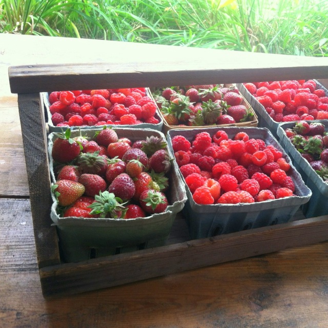 Berry update – Look what an enterprising family scored last week, and what a picturesque shabby-chic picking box. This week, raspberries are sputtering. Time to lower expectations. Still there but you have to earn them. Strawberries will continue as before: hunt and you will find them scattered throughout the surprise field.