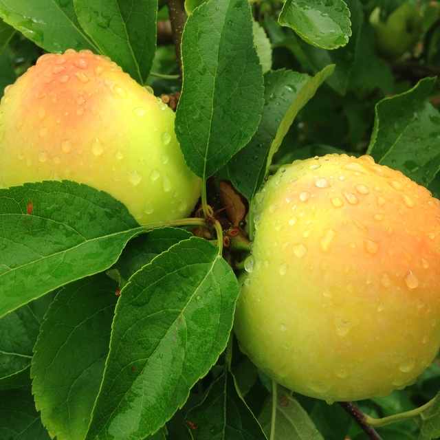 Pristine apples – Time to pick these terrific apples. Come on, folks. Don’t be predictable and wait til September to pick apples. These Pristines are not red but they are blushing with summer buzz. A good-eating gift before the dawn of August.