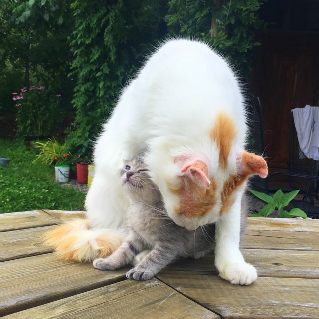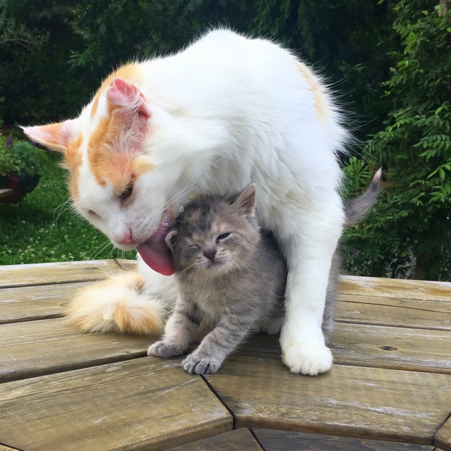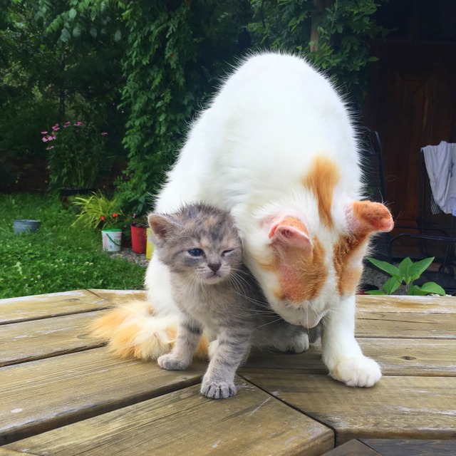 Big Old Farm Cat Adopts Little New Farm Cat – You can binge watch 4 episodes of Season 1 right here. Each episode lasts about 2 seconds. Ready go. Episode 1, “The Lick.”
