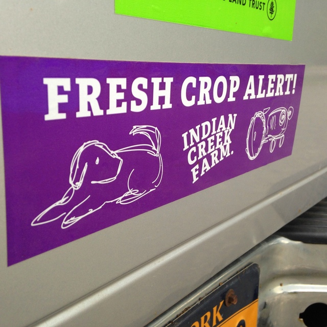 Free stuff – That’s your Fresh Crop Alert for the weekend of July 29, 2017. But you can have a fresh crop alert on your car FOREVER. Please stick one of these on something. We have 2,000 of them sitting around here. See you at Farmer Greg’s Sunday Garlic Party? Hope to see you at The ‘Creek.