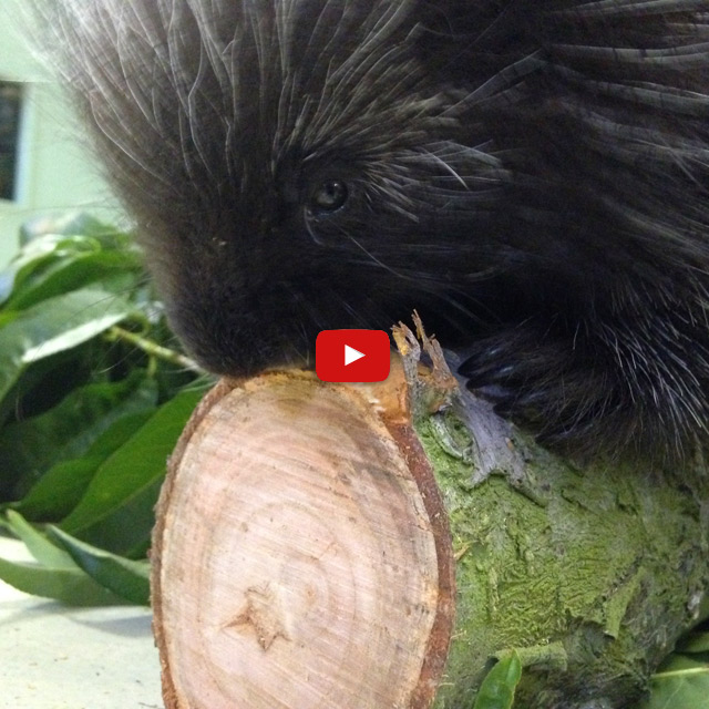 Dead tree good for baby porcupine! Amanda Moshier, Manager of Animal Collections at Cayuga Nature Center, called the farm this week with an unusual inquiry: Did we have any freshly dead fruit trees to feed Sir Pokesalot? Watch this positively cherubic young porcupine chew into the tender cambium of a recently fallen peach tree. Too much fruit hurts his tummy, but the fibrous treestuff is his favorite meal. Thank you, Amanda and Pokesy, maybe you two could visit the farm one day this fall? Kids would loveeeee it.