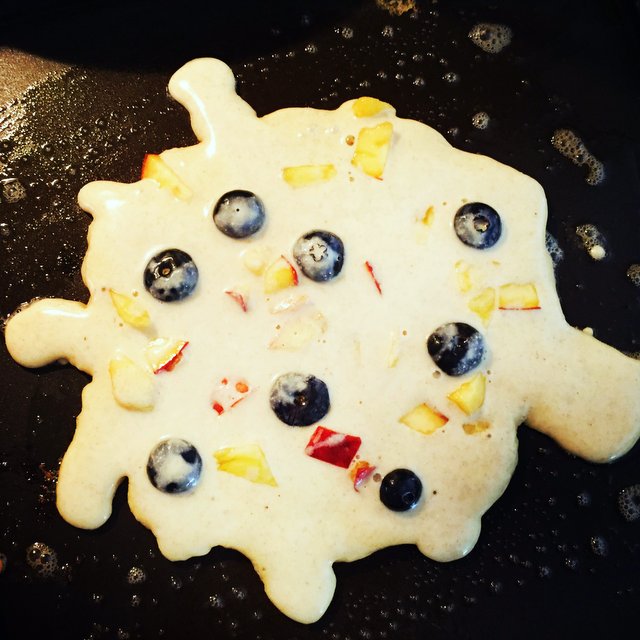 Look at these pancakes. Our Farmketeer-of-the-Week, Kelly, worked a really long time to perfect the shape and work out the peach-to-blueberry ratio.