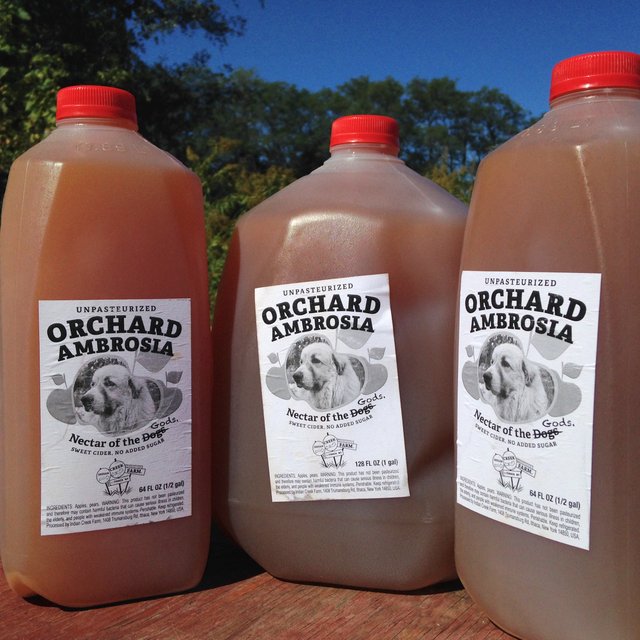 P is for CIDER. That’s right, Goody Two Shoes, we make the rules around here and P stands for cider. Orchard Ambrosia is fresh PRESSED with a capital P every week and sometimes several times a week like when YOU DRANK 100 GALLONS last Saturday. Farmer Steve himself had to drag ass down to the cider press first thing Sunday morning to make more. You people are insannnnneeee for cider.