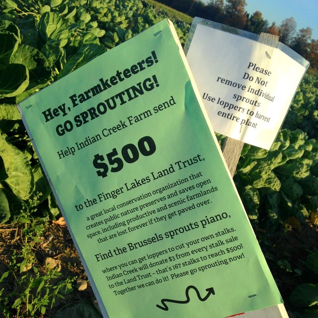 Hooray, ‘Creekniks, you did it! You showed your MUSCLES by picking BRUSSELS! You raised $500 for the Finger Lakes Land Trust. Thank you! And thanks to Hannah at the Land Trust for picking sprouts then throwing herself a sprout-themed birthday party. Whatever it takes to save land forever! Hope to see you at The ‘Creek.