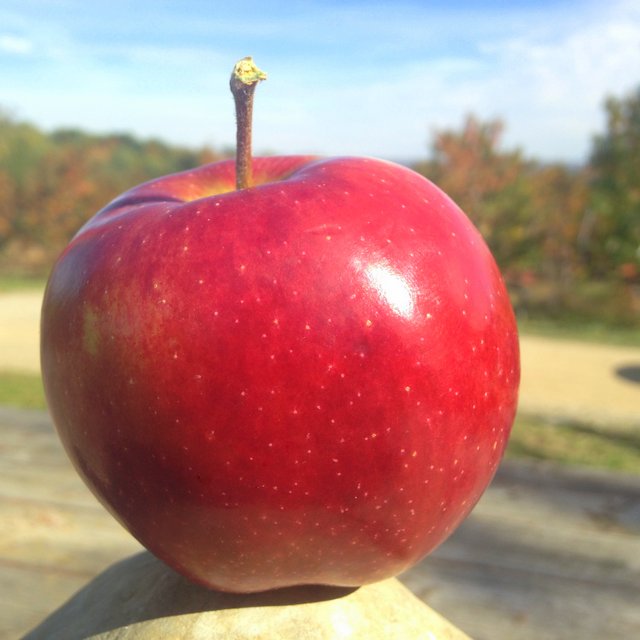 Empire apple sale! 95¢ a pound! These are the LAST APPLES OF THE YEAR. Same deal as Gala, you can find them in crates around the orchard and also at the farm stand. A cross between Mac and Delicious. A shiny red lunchbox apple that does not bruise easily.