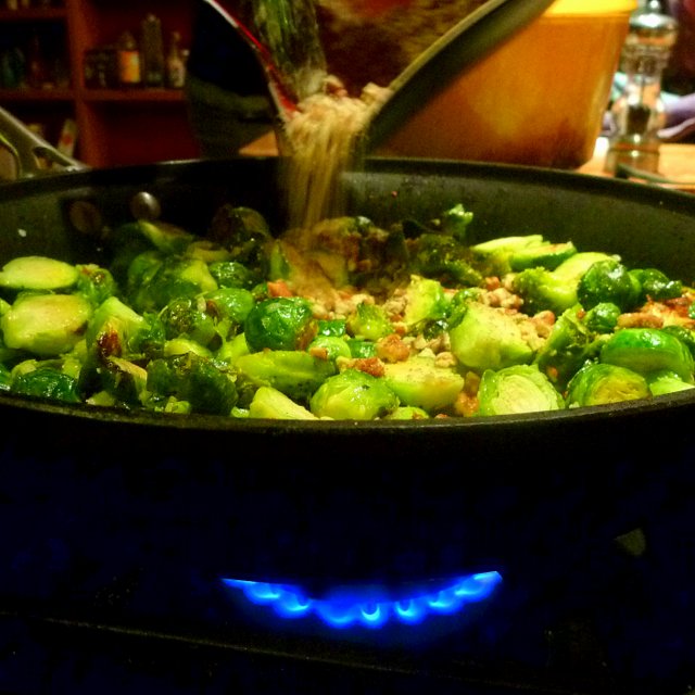 You can pick more sprouts this week. Another week or so and the crop will be gone. Come lop your own stalks in the field by piano #3. Many of you have never seen a stalk of sprouts. First you strip off the leaves, then you lop, then pop the sprouts off the stalk for cooking. Fry them with bacon or roast and drizzle with balsamic reduction. Singe the tips a little.