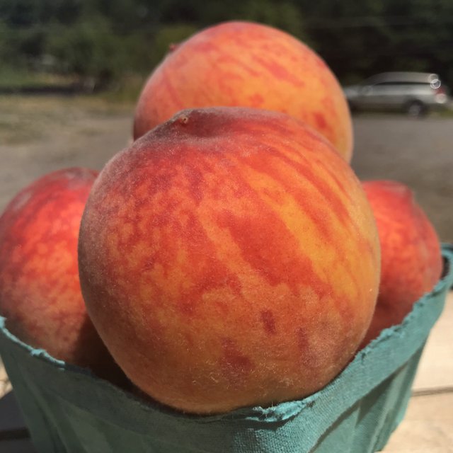 Get PeAches at the stand. We have early PA peaches. Soon we’ll have peaches to pick. And it won’t be too long til New York has the climate of South Carolina and we can have peaches in January. Meanwhile, for mid-July peaches, support PA farmers. They’re people, too, and not so far away.