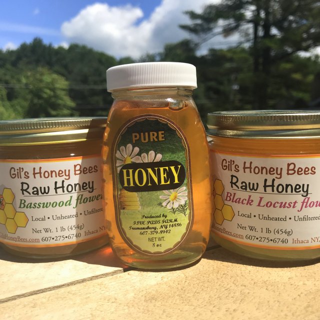 Honeys. Local honey from Gil’s and Five Pads Farm just up the road. It’s not like that stuff in the squeezy bear.