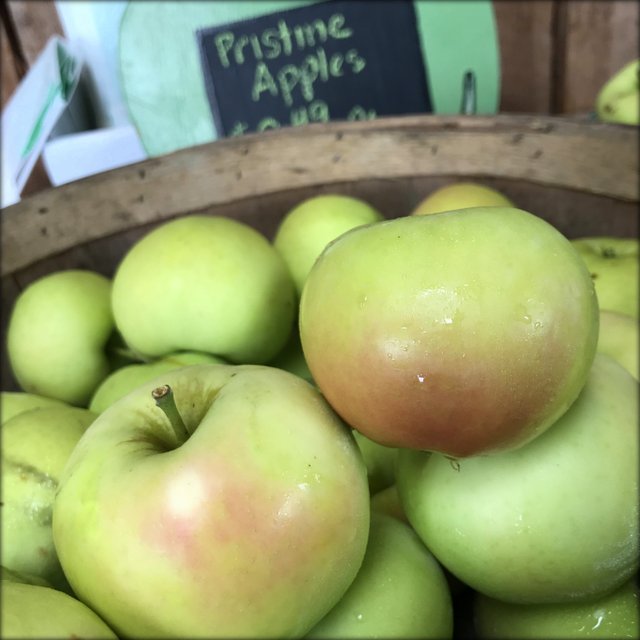 Last and probably least: Pristine apples. Almost nobody cared about the Yellow Transparent apples of last week. Now we are into August apples, a little better than July. Please come pick these. PLEEEASE? It’s a real apple. Real tart. One of us here at the farm stand says, “They get better the more you eat them… just keep chewing.” Got to love a gal who can put a positive spin on anything. But Pristines are good keepers and, for some of you, the first apples of the year. And that blush!