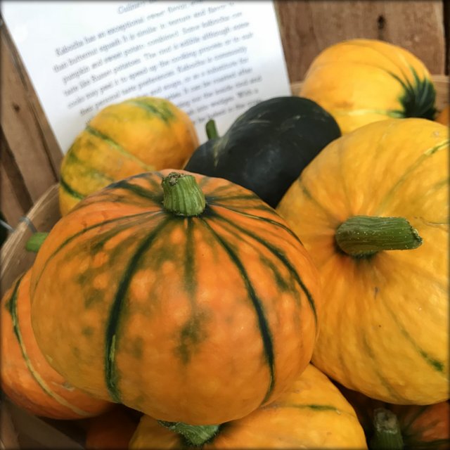Something nuevo! Pumpkin’s sweeter cousin. Emily brings us a new treat from her veggie field: Japanese kabocha squash. It’s a great summer treat, roasted with maple syrup and ginger or lots of creative ways. Emily has posted recipes at the farm stand, or just hunt around the web: “kabocha.”