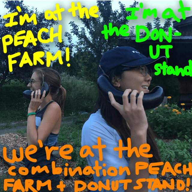 We could see it happening before our very eyes. Sunday night, Sammy called a friend, “How peachy are you feeling?” Risa called a friend, “How peachy are you feeling?” People were feeling soooo peachy. By Monday morning at 8 AM, cars were lined up. We had pickers from all round the Finger Lakes and Pennsylvania and New Jersey and Ohio and even Binghamton. And Canada! (It’s that British colony north of Vermont. They have a QUEEN! How quaint and… well… quaint.) Thank you Hannah for the eggplant telephones and that masterpiece which we can’t get out of our heads now.