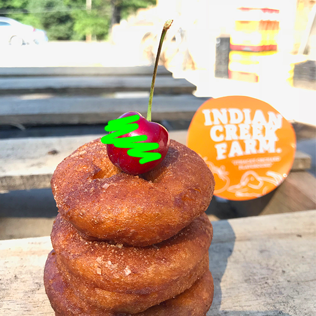 Donut peaches are kicked, but donuts are kicking. You can get them pretty fresh and usually warm on Saturdays and Sundays 10 AM to 6 PM. Tell the donut lad he’s doing a good job. He makes LOTS of donuts. (Cherry season is kaput.)