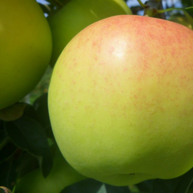 Pick Ginger Gold apples. Rows 9 and 11. A 1960s release from Virginia, discovered as a chance seedling, possible cross between Golden Delicious and Albemarle Pippin. One of the best early season apples.