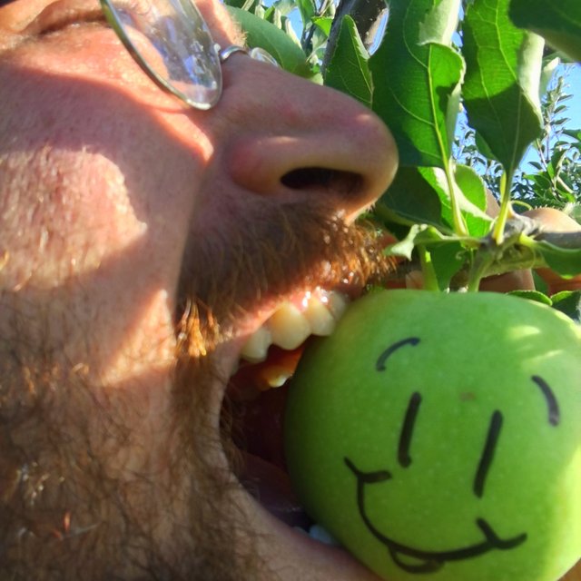 It was Space Farmer Tino’s brainchild. He saw a face in an apple one day. To him it was the Man in the Moon. He bit the Man in the Moon in the head. Thus he seized the idea in mind and body. He carpe’d the diem with the gusto of Musk. (Come pick apples now! Dayton, Elstar, Jonamac, Autumn Crisp, and more as new rows ripen!)