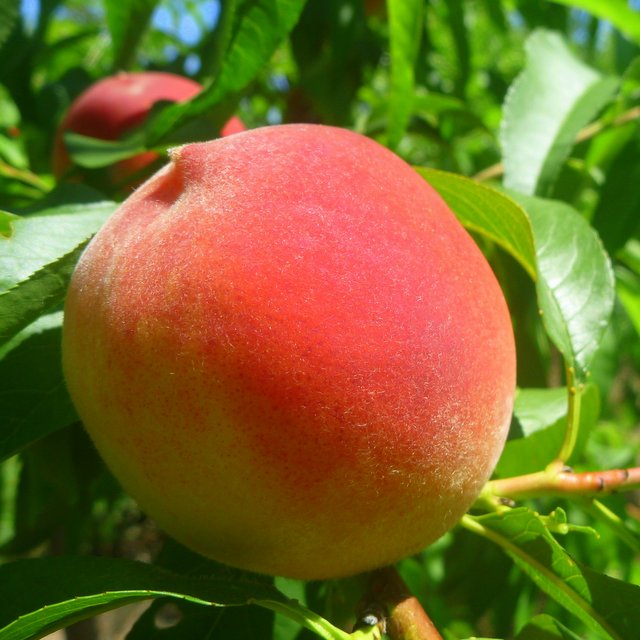 Last chance to pick a peach off a tree. Peaches will be kaput after the weekend. To a human being, a peach hanging silently on a tree is like “some patient god come down to woo her.” Flannery O’Connor wrote that about a cow in a field outside a lady’s window. But a peach is every bit as cow as a cow. Biscuit of wisdom = Every peach contains the universe, every drooly bite creates it anew.