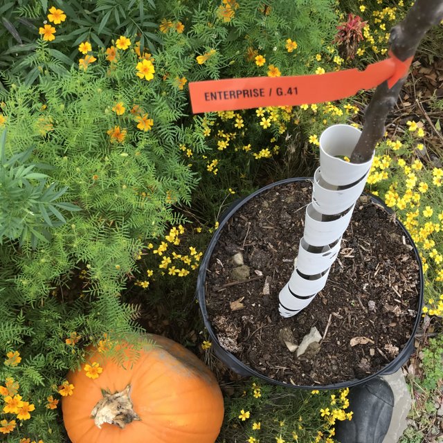 If you ever get tired of our schtick and want to grow your own orchard, we’ll sell you a tree. You can see some potted trees at the farm stand now, or order online from our sister biz, Cummins Nursery. The live inventory is here. NOW is the time to reserve your trees for spring planting. As the fall harvest season draws to a close, big orchardists around the country swoop in and buy hundreds or thousands of trees. So now is your chance to get a couple you might like before our best inventory is cleared out. We sell out every year.