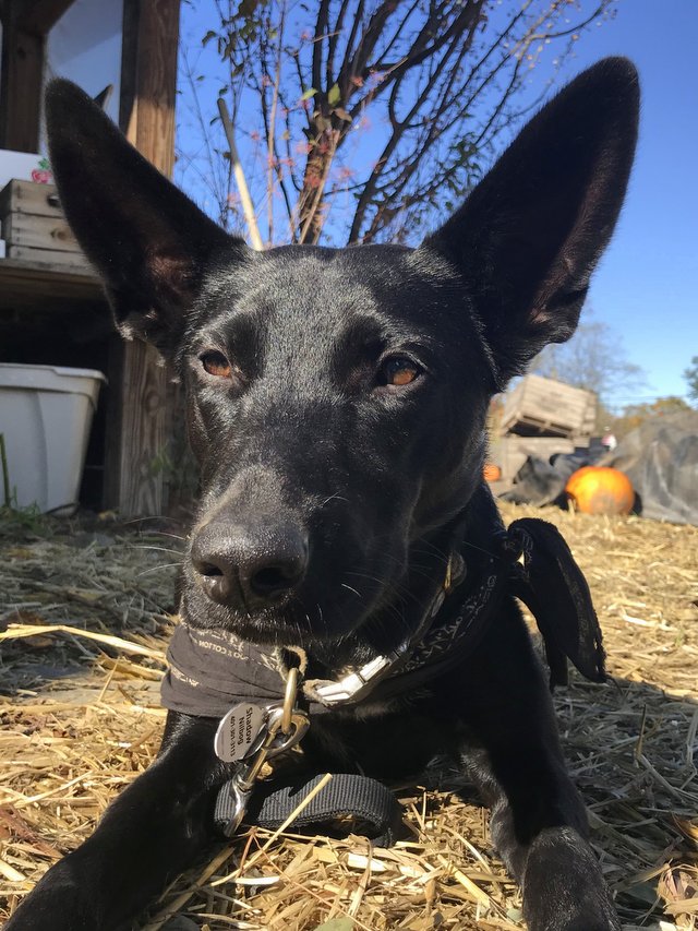 Please welcome Shadow to the farm! With ears of the bat goddess and old soul eyes, Shadow perceives allll! She is desert lean and southwest obsidian. Comes to us from New Mexico through a friend of a dog of a friend. She loves a tennis ball so much, or any apple that looks like a tennis ball. Such as Mutsu which you can pick now. Best apple of the year, along with Spigold which, as luck would have it, you can also pick now. But only for a few more days before they drop in the frost. If you see Shadow, she is a little shy but getting comfortable. First day at the dog park, she had the tail between the legs and not sure what to do. Now she is super popular with the pups, what with those extraordinary ears and lickety-split dashes and handsome snout. And black bandana. #newfarmdog