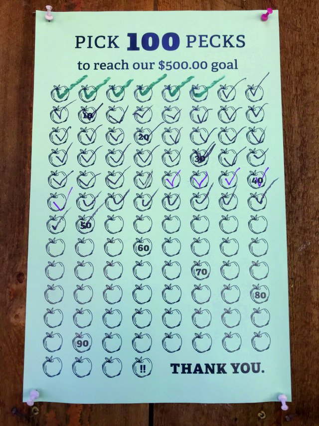 Poster #2 reports the progress. We are HALF WAY to $500 raised! Oh wait! Another picker just picked a peck. So we are at 51. Please help us finish picking this year’s lovely apple harvest – and benefit a great conservation organization based right here in town and working right here in the FLX.