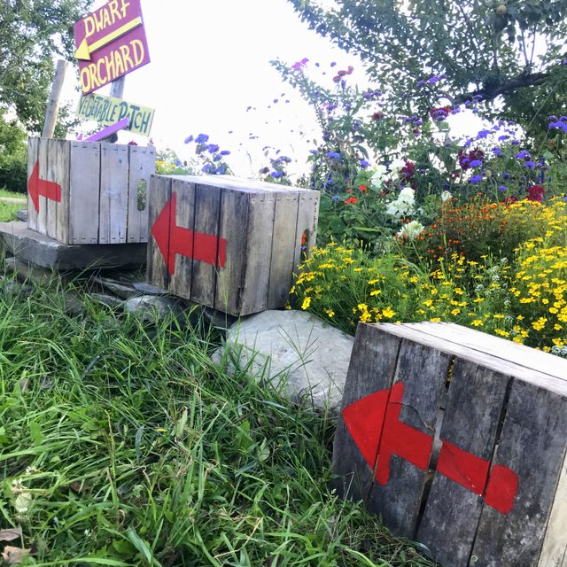 All you have to do is: Turn left when you see these arrows by the pear trees. If you turn left, you will have achieved all that is asked of you at that moment in your life. And that IS amazing. Go ahead and say, “Wow, I’m amazing.” You would be amazed by how many people turn right –or– drive straight when they come to this farmy intersection. (For the record, nobody has “turned straight” or “gone straight” here, as far as we know, but that would be fine too. The pears are experts at minding their own business. They would never think of telling you how to live your one wild and precious life.)