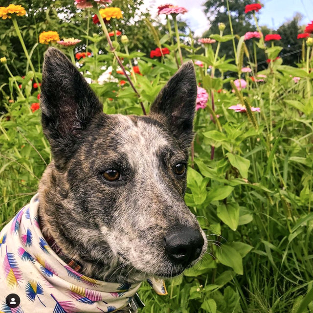 A special guest in the flower patch. Say hello to Magnolia Pie Adventure Dog, @magnolia.pie_adventure.dog.