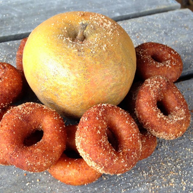 Eat fresh donuts and sweet cider. Get your freshly fried toroids of fructotic splendor by the dozen or half-dozen on Saturday and Sunday 10:30 to 6:00. If you want cinnamon sugar, simply whisper, “A sprinkle of SIN, SUGAR.” Nick the Donut Kid will know what you mean. Wash down the donuts with freshly pressed sweet cider, known around here as “Orchard Ambrosia” – 100% unpasteurized old-timey juice of apples and pears. Freezes great. We’re brewing hot mulled cider, too, now that a nip is in the air.