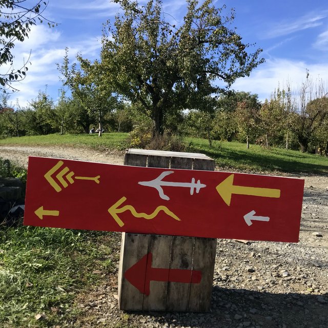 Higgledy-piggledy, pell-mell, helter-skelter. These words are birds of a feather. They mean jumbled or scattered or disordered. Evincing entropy. A willy-nilly mish-mash. Much like our Vintage Orchard, with Red Spy (ready now) and Rome Beauty and other classics planted all hither and thither. Please zig-zag therein unhurriedly, have a picnic, hike around. Keep your eyes peeled for red ribbons on trees with red apples. Those are the Red Spy apples – possibly the best pie apples in the Lower 48. And, yes, you can still get HONEYCRISP apples and other varieties of apples and pears at the farm stand. *Note: Some of the red ribbons have faded to pink. But they are still Red Spy.