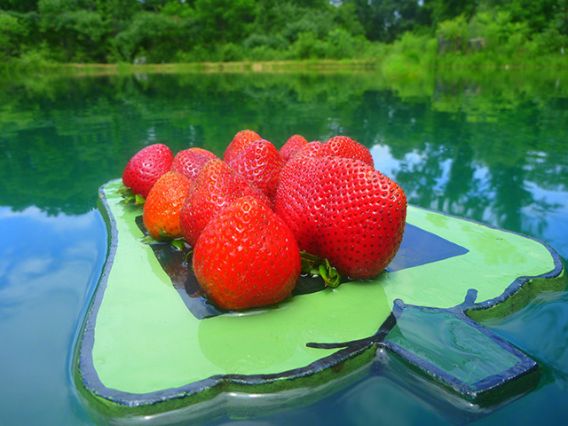 Sweet cherries always give the strawberries a lift down to the boatdocks. They bid “fair winds and following seas.”