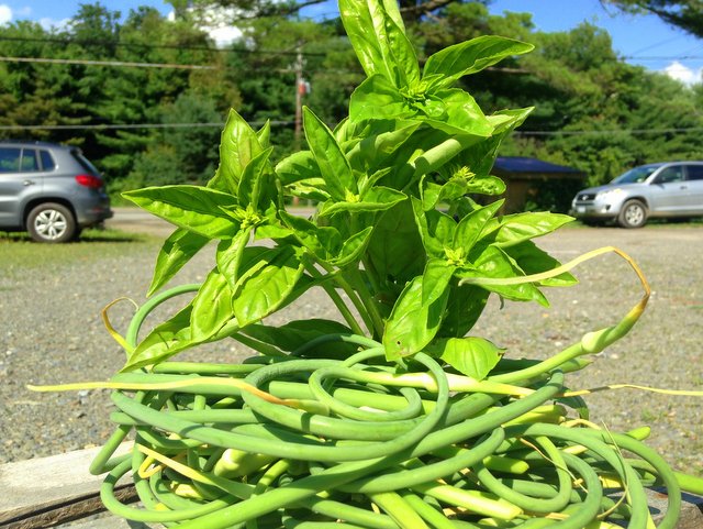 Besides u-pick strawberries and raspberries, you can shop the farmstand. As of Friday, seasonal goodies include Greg’s fresh garlic scapes, Alex’s noteworthy cucumbers, Gil’s honey, Sean’s honey, Sean’s syrup, our flowers, and local pottery by Shirley Brown including gorgeous berry bowls. It is a pleasure to share these local products with you. Shelves will be bursting with summer produce soon.