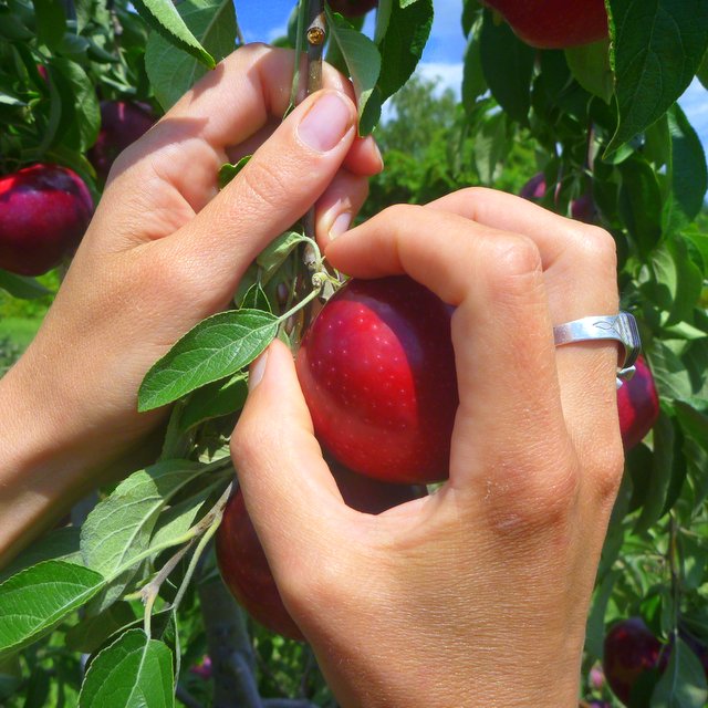 How to avoid heartbreaking waste in apple season: Pick with 2 hands, steadying the branch and/or nearby apples with your non-dominant hand, then twist off your target apple with your best paw. Don’t let an apple fall, then knock another apple below, causing a chain reaction. Multiply that effect by thousands of pickers… and you got a defeated apple farmer. Please read our Farm School tutorial, How to Pick an Apple.
