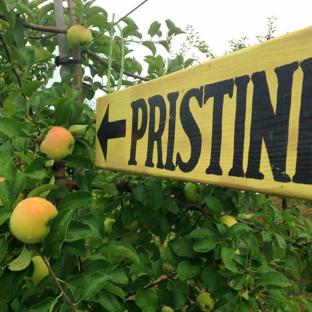 U-PICK APPLES = PRISTINE. They are the first real apple-ish apples of the year. Lovely lemon-yellow orbs of fruitological blushitude. Descendants of the venerable McIntosh and Golden Delicious varieties. Perfect for eating fresh, saucing, and cooking. Easy to pick in Row 10 of the Dwarf Orchard. Easy as pie. Tart, crisp, juicy, and firm. And isn’t that blush prettier than a store-bought doll? True foodies will branch out from Granny Smith and Honeycrisp to try Pristines and other summer apples. Not shaming, just SAYING.