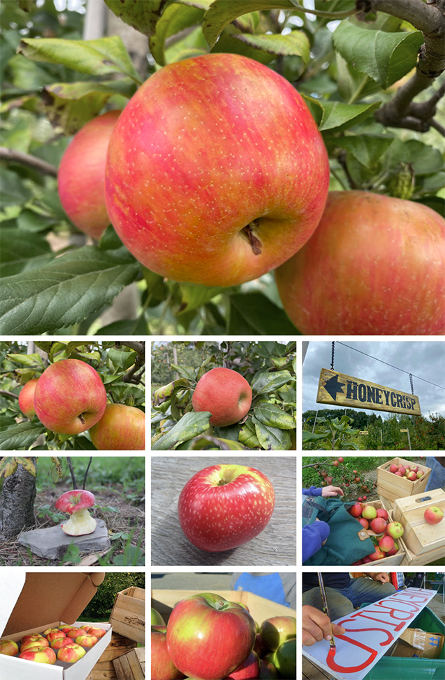 U-PICK APPLES = HONEYCRISP. So much has been said about Honeycrisp, some of it overblown to the Nth degree. But you would not be wrong to call Honeycrisp, “The rock-star, cold-hardy apples from Minnesota.” That’s the line from our nursery web site, where you can order own Honeycrisp trees for planting in your yard. Be advised that you will need to give your trees at least 5 years before you’ll be flush with fruits. Meantime you can pick Honeycrisp here. WHILE SUPPLIES LAST. Think of Honeycrisp as rockstars swinging through your little town on tour. Everyone’s all a-titter, all the hellions want a piece, but soon Honeycrisp will be back on the bus to faroff venues in Moravia, Lisle, Horseheads, Watertown. Snooze you lose. Blink and you’ll miss ’em. Get grounded by the folks and you’ll have to wait til next tour – a whole year. So if you want to pick Honeycrisp, please come pick now. Now would also be a good time to read our How to Pick an Apple tutorial.