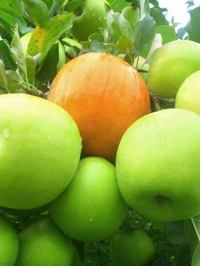 U-PICK APPLES = Mutsu, Splendour, Sir Prize, Northern Spy, Spigold, Prairie Spy (pictured), and possibly others by the time you arrive. The assortment of apples in this week’s lineup will cover the bases for eating fresh, baking, and saucing. There might be a few late varieties to ripen after these, but NOW IS THE TIME to pick apples. Get a map at the stand and we will direct you to the best picking. If you haven’t read our How to Pick an Apple tutorial, please do so! Thank you for picking enthusiastically but mindfully!