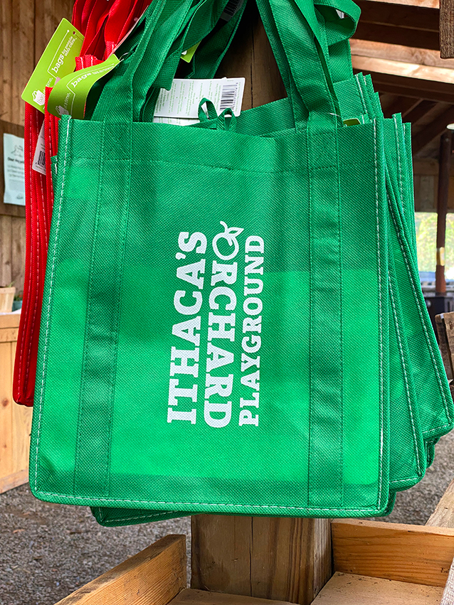 BUT WE DO HAVE TOTES! Reusable on the farm and anywhere. Two sizes. Last chance to get some for toting stuff around in the winter. They make great gift wrapping too – instead of paper or foil that gets rumpled, torn, and tossed, put presents in these cute bags. Here’s the little ones.