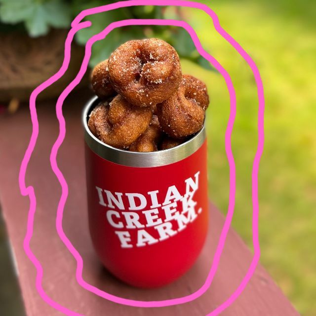 NEW – COFFEE! First time ever, you can get a cup of coffee at the farmstand. We are brewing from hometown roaster, Ithaca Coffee Company, and you can serve yourself. No lattes, no pumpkin spice, no ice. Just a simple cuppa for your agritourism adventure. Self-serve kiosk next to the hole-in-the-wall donut shoppe. (Pictured in new tumbler!)