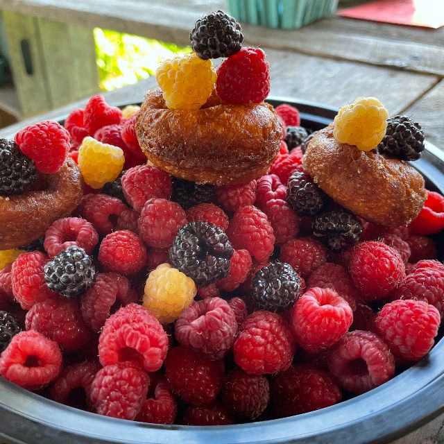 CO-‘CREEKNIKS OF THE WEEKNIK. Kate and Gabriel replied to last week’s Fresh Crop Alert with this photo and said: “We love to combine your raspberries and donuts – amuse bouche! We love your farm!” Thank you for coming and picking and sharing! Bottom pic is also theirs!