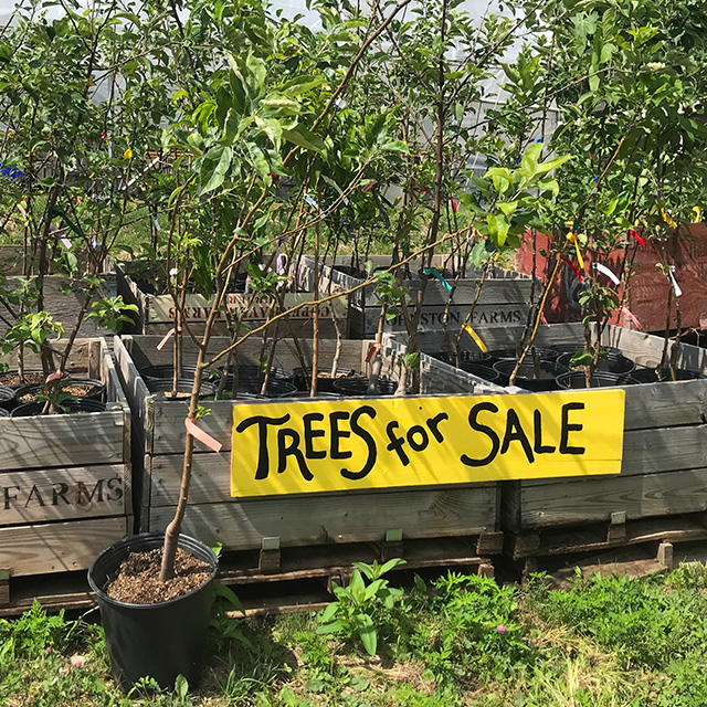 NEW: POTTED FRUIT TREES. Plant your own orchard and send us a newsletter. We’ll come picking at your place. Please have the donuts ready by 11:00 AM sharp. Among the trees you can buy are apple heavyweights Honeycrisp, Enterprise, Liberty, Cox’s Orange Pippin, and a handful of nectarines and cherries. Fruit in the backyard is food security!
