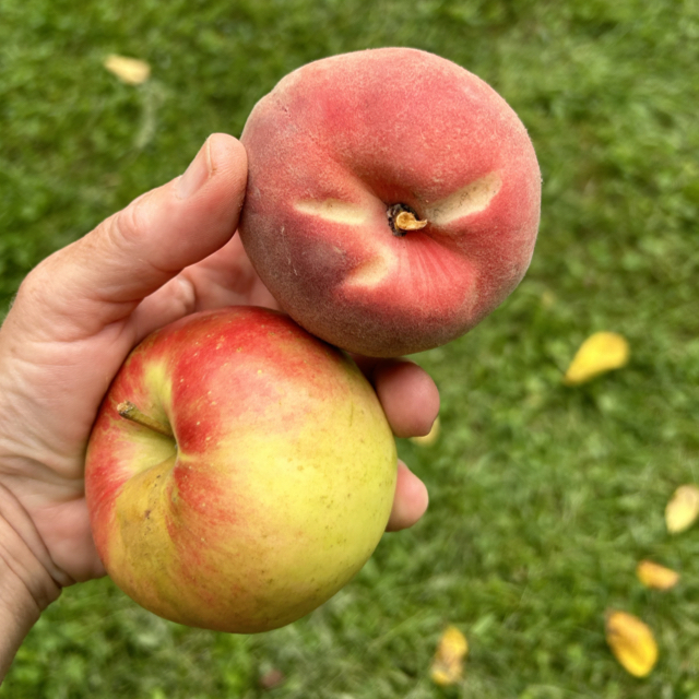 OPEN LABOR DAY! U-PICK LATE SEASON PEACHES, PLUMS, ASIAN PEARS! U-PICK SANSA, GINGERGOLD, DAYTON APPLES, VEGGIES, TOMATOES, FLOWERS, HERBS. Prepicked peaches from Sodus Point at farmstand. Eat donuts. Get prepicked peaches, apples, Asian pears, garlic, veggies, tomatoes, corn, potatoes.