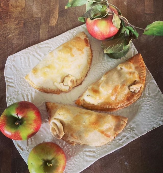 And how about this DOUBLE ‘Creeknik creation from@happiestdaydesigns: “So the craziness of the world got to me today. Coping mechanism — baking hand pies. I got a little creative & swapped maple syrup for sugar & added vanilla. Yum! I used Elstar & honey crisp apples from @indiancreekfarmithaca. We went apple picking last week. Another safe & happy way to connect with the good in my life ❤️ Have a great weekend! Oh, and the serve board is our textured lace.” The hand pies are pictured atop a hand-made ceramic platter. Double nice!