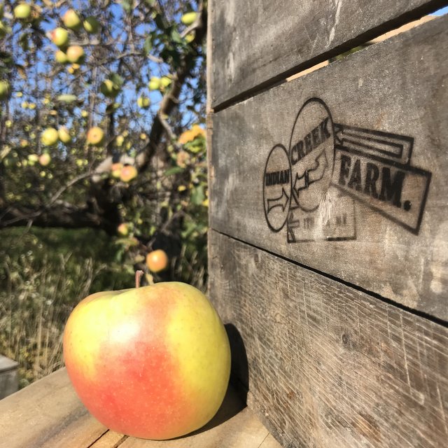 Mutsus get as big as pumpkins. Or pumpkins get as small as Mustus. Dad planted the Mutsu orchard back in ’84. We could rhapsodize about the Mutsus for weeks. The British call them “oven busters” since a couple of old orchard ladies could pick one giant Mutsu and bake it in the oven and split it as dessert for their afternoon stitch-n-bitch. But – as we have opined before – boys can do that, too. Ovens and stitching and b*tching aren’t just for girls. Same with dessert. And feelings. And sharing. And little black cocktail dresses. All welcome at The ‘Creek. Hooray.