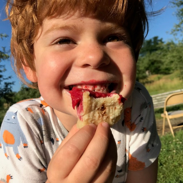 Dusky’s sweet corn is an OMGawdsend. Just crushing it with his second year as a corn cropper at The ‘Creek. Eat it right outta the pot or, like these juveniles of the farmer species, right offa the stalk cavewoman style. Zero butter and even less salt than that. (But try Old Bay Seasoning!)
