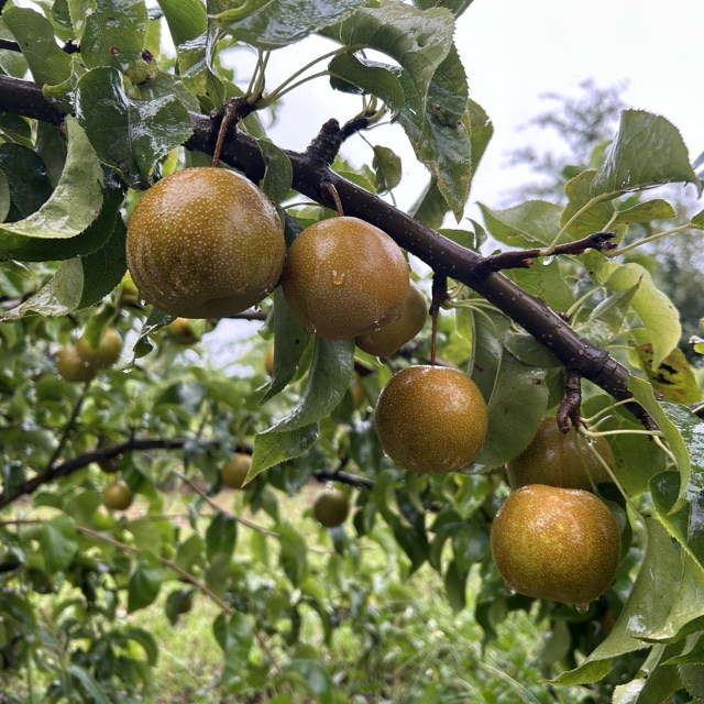 Comments Off on PEACHES ON PAUSE FOR A FEW DAYS! PLENTY OF PREPICKED PEACHES AVAILABLE. Come pick Asian pears, veggies, flowers, Zestar! and Dayton apples, jam plums, and herbs. $10 minimum for U-pick tree fruit and veggies. Open 9AM-7PM Tuesday-Sunday (closed Monday). Get prepicked peach pecks, corn, kale, garlic scapes, potatoes, eggplant. Honey, syrup, apple cider vinegar, pottery. FRESH APPLE CIDER DONUTS 11AM-5PM Thursday-Sunday.