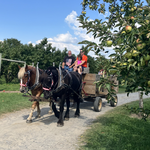 U-PICK HONEYCRISP, CORDERA, LIBERTY, EMPIRE, MACOUN, MCINTOSH, CORTLAND, EARLY FUJI, SPARTAN, SWEET 16, AUTUMN CRISP, PIXIE CRUNCH APPLES, BEEFSTEAKS, SAUCE TOMATOES, VEGGIES, HERBS. Eat donuts. Drink cider. Walk in sunflowers – BYO scissors. Get prepicked apples, pears, Brussels sprouts, winter squash, garlic, potatoes, peppers, eggplant, tomatoes. WAGON RIDES: Saturday-Sunday 10AM-4PM.