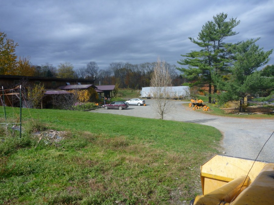 Spacious parking lot at the Farmstand on Route 96.